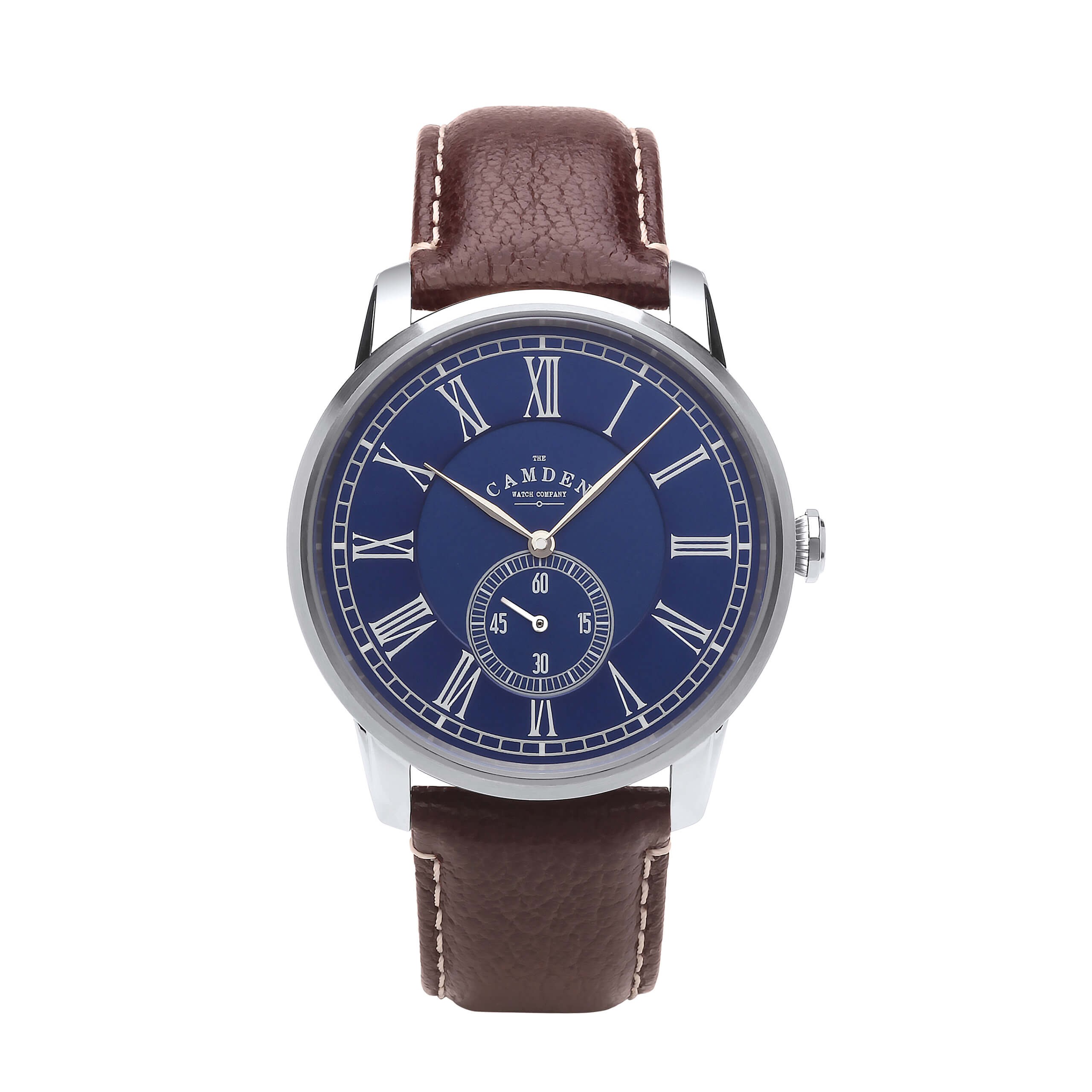 『Camden watchNo.29系列』銀色不鏽鋼錶殼與藍色錶盤&咖啡色皮革錶帶