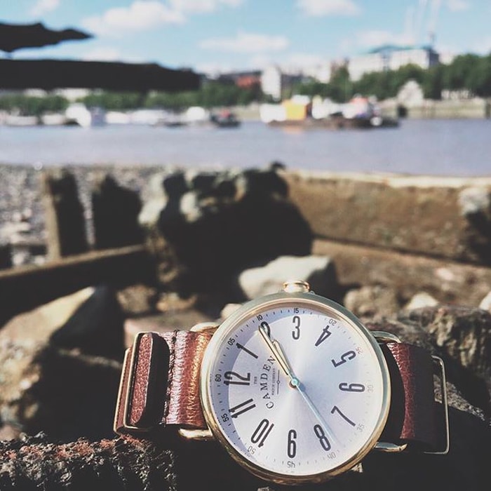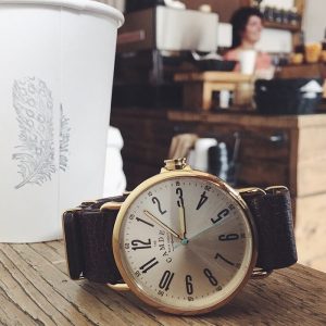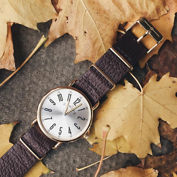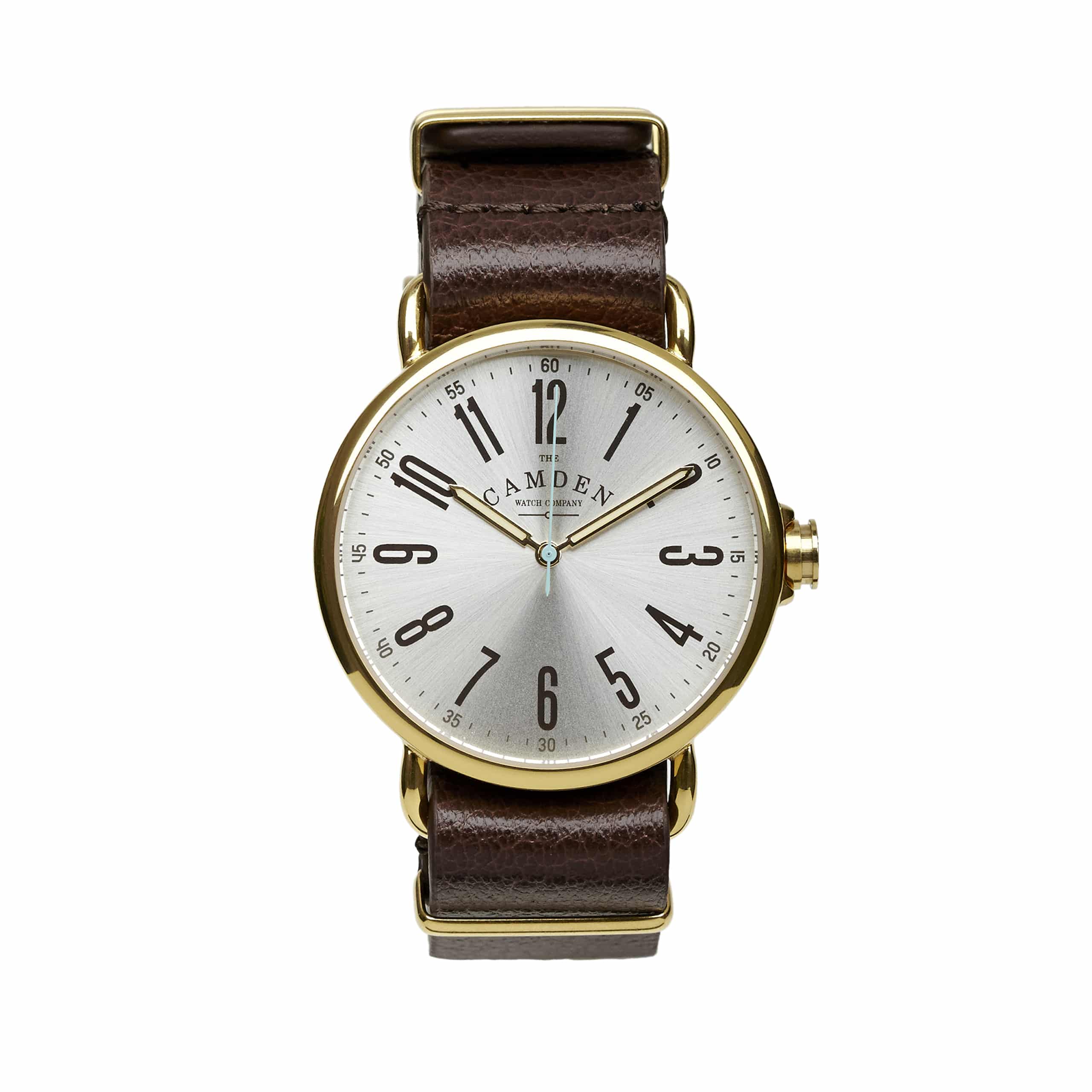 『Camden watchNo.88系列』金色不鏽鋼錶殼與錶盤&經典咖啡皮革錶帶